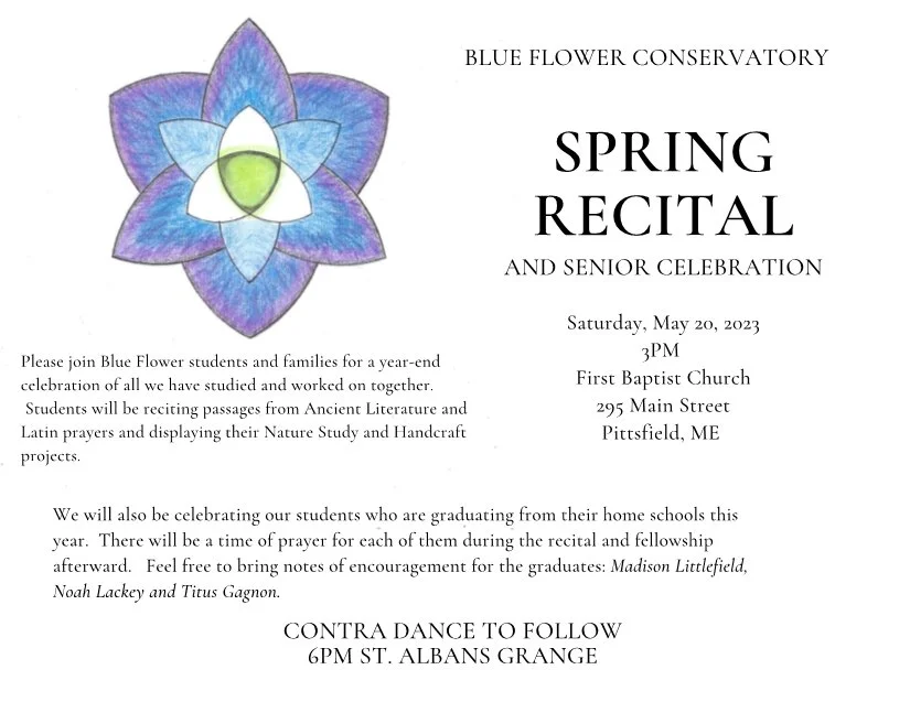 Blue Flower Conservatory Recital 2023 Saturday, May 20, 2023 3:00 PM 5:00 PM 15:00 17:00 First Baptist Church of Pittsfield 295 Main St. Pittsfield, Me 04967 United States (map) Google Calendar ICS